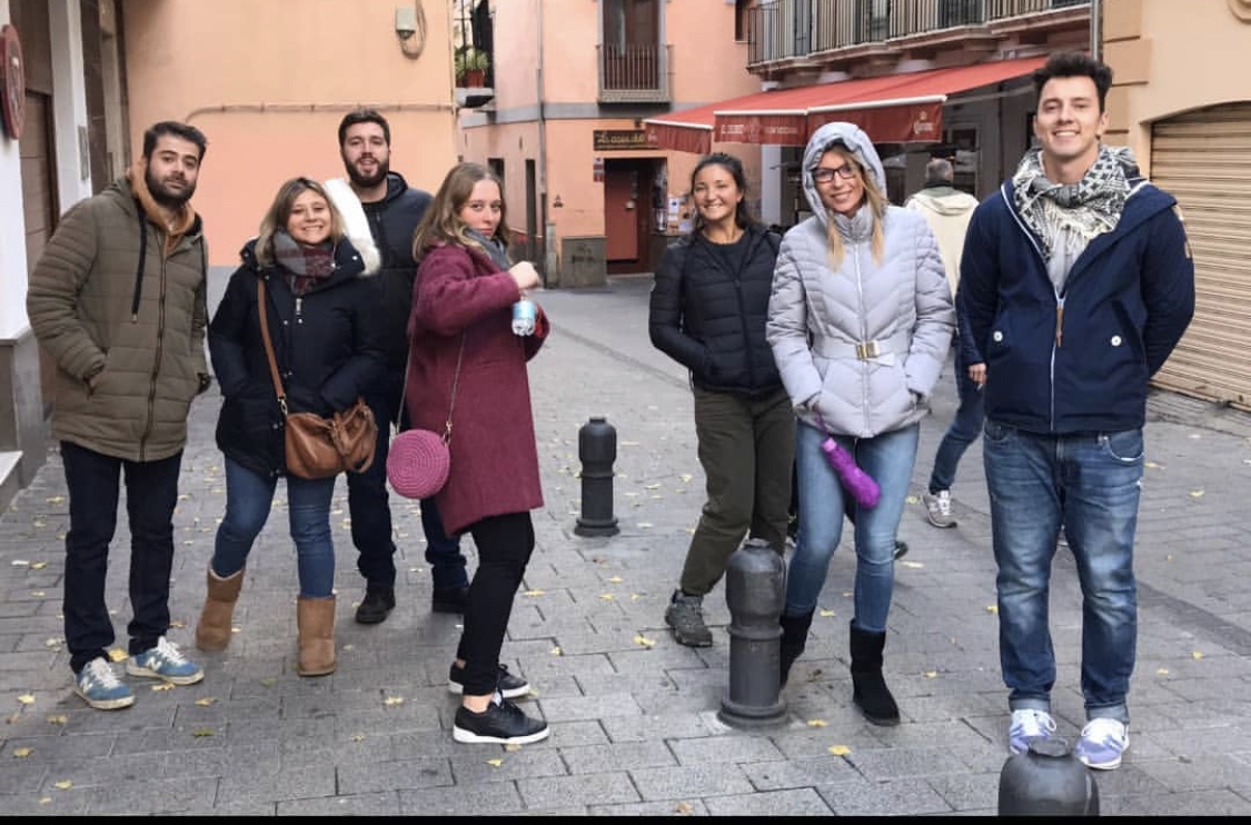 But the way the Spanish eat is like with every drink they get a free round of tapas which is just like one bite per person. So we had three drinks and three little breads with stuff on it and left.
